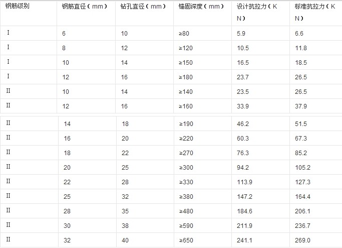 5、如同預埋,后置鋼筋具有優越的荷載一位移特性。 6、耐熱性好,可埋筋后進行焊接。