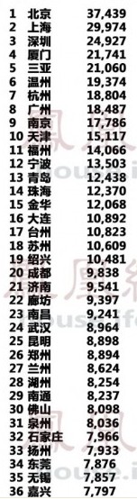 2014年1月全國城市房價排行榜前10名分別是北京、上海、深圳、廈門、三亞、溫州、杭州、廣州、南京、天津。北京還是居于榜首,而南方城市廈門迎頭趕上位于第四的位置。從1月全國房價排行榜前100名單可知,1月全國城市房價排行榜前10名分別是北京、上海、深圳、廈門、三亞、溫州、杭州、廣州、南京、天津。福州房價以14066元/平方米,位居全國第11,同比上漲15.48%。不少網友悲嘆:房價直漲何時才能買得起房啊!