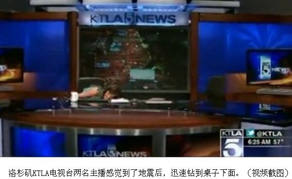 3月17日美國加州洛杉磯于當地時間17日發生里氏4.4級地震。洛杉磯KTLA電視臺的兩名主播當時正在做電視直播。抗震加固公司:在地震來襲的一剎那,男主播朔伊布勒反應靈敏,在露出驚恐的表情后,同女主播一起鉆到了桌子下面,這一幕被正在直播的攝影機抓了個正著。地震發生在當地時間17日6點25分(北京時間21點25分),當時朔伊布勒正和女主播一起播報早間新聞。地震來臨時,朔伊布勒露出了驚恐的表情,然后喊道:“是地震,我們遭遇了地震!”然后他反射性的跳起來,同身旁的女主播一起鉆到桌子底下。