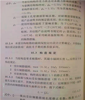 而化學植筋由于長度不受限制,破壞形態易于控制,故適用于靜力及抗震設防烈度≤8度的結構構件及非結構構件的錨固連接,F已廣泛應用于已有建筑物的加固改造工程。如:施工中漏埋鋼筋或鋼筋偏離設計位置的補救,構件加大截面加固的補筋,上部結構擴跨、頂升對梁、柱的接長,房屋加層接柱和高層建筑增設剪力墻的植筋等。