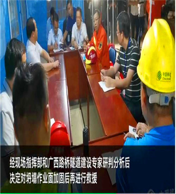據(jù)了解,現(xiàn)場為樂業(yè)縣樂業(yè)大道正在建設(shè)的“上崗隧道”,施工至540米處突然發(fā)生坍塌,有9名施工人員被困,年齡最大57歲,最小的24歲。